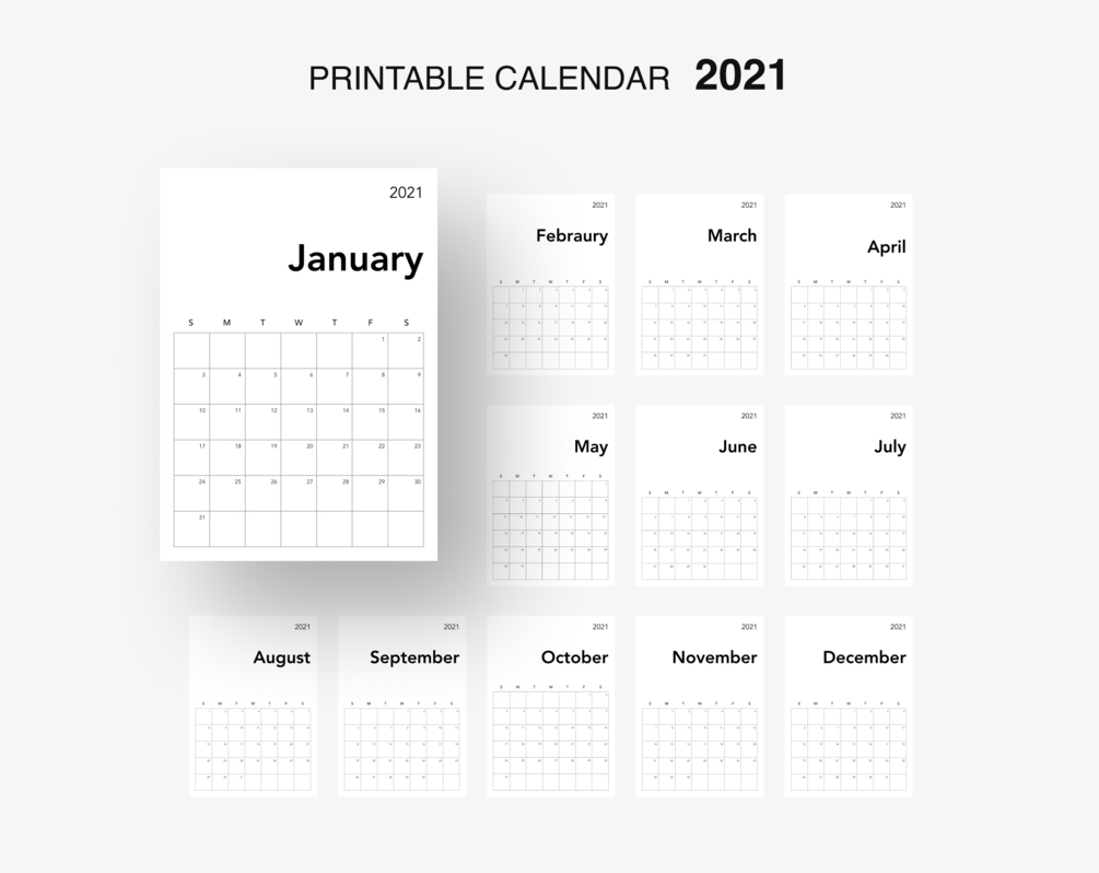 A 2021 minimal calendar. Perfect for your noise-free office or bedroom.